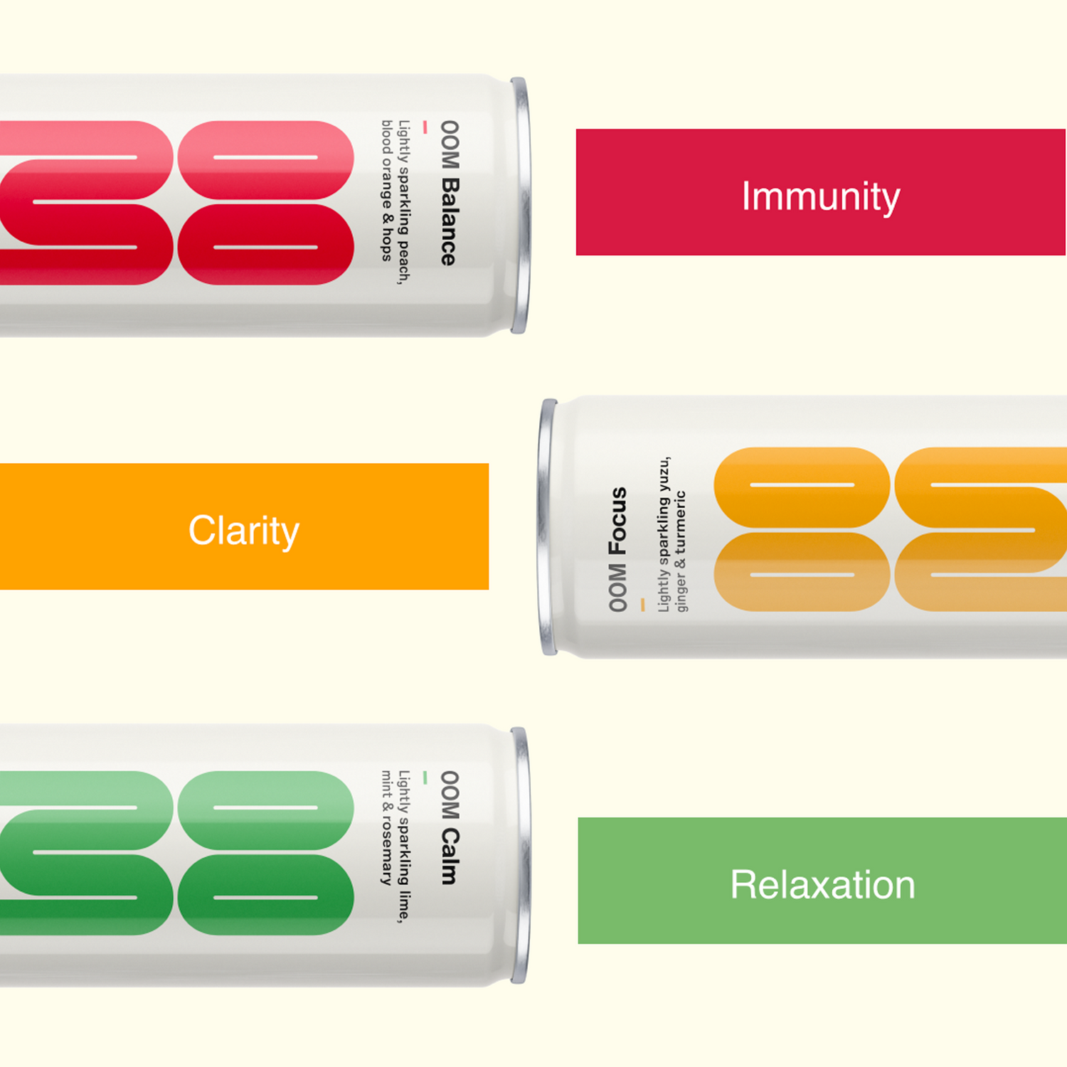 Oom is a delicious, lightly sparkling, all natural, non-alcoholic functional beverage packed full of adaptogens, nootropics and vitamins. We have three different flavoured drinks with three different functions: cognitive, relaxation and immunity. Driven by three incredible mushrooms Lions Mane, Reishi and Chaga respectively.